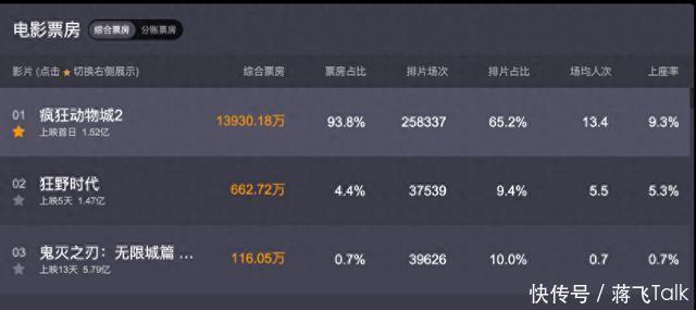 小编推断,这一部电影也是今年唯一全球有可能会超越《哪吒2》的电影了。 大家都抱怨电影很差很冷,但《疯狂动物城2》的火爆告诉大家,不是没人看电影了,而是大家不再为烂片走进电影院了,有了好片子,市场马上热闹起来。 同时,受到了大片《疯狂动物城2》的影响,其他的新片的排片完全被压缩。 电影《狂野时代》《鬼灭》以及《惊天魔盗团》的排片都直线下降到了10%左右,而后者连8%的场次都没有了。